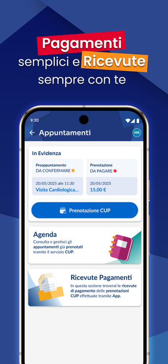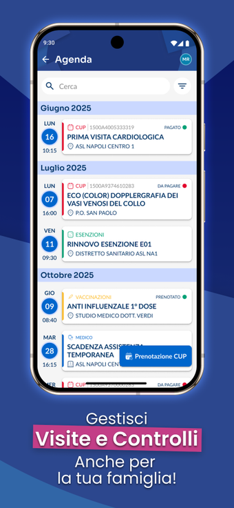 SINFONIA Salute에서는 지역 예약 시스템과의 통합을 통해 의료 방문 및 전문 테스트 예약이 직관적입니다. 사용자는 상담을 조직하고, 일정을 관리하며, 필요할 경우 예약을 취소할 수 있습니다. 이러한 옵션이 하나의 앱에 중앙 집중화되어 있어 행정적 번거로움을 줄이고 매일 소중한 시간을 절약합니다.